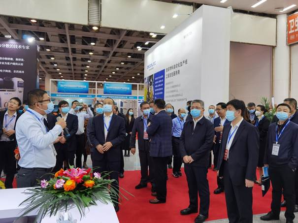 省工信厅党组书记、厅长曹慧泉陪同朱忠明副省长巡馆。